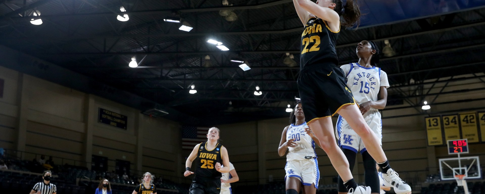 Photo: Iowa’s Caitlin Clark goes in for a layup during Tuesday’s NCAA Tournament game against Kentucky. (Stephen Mally/hawkeyesports.com)