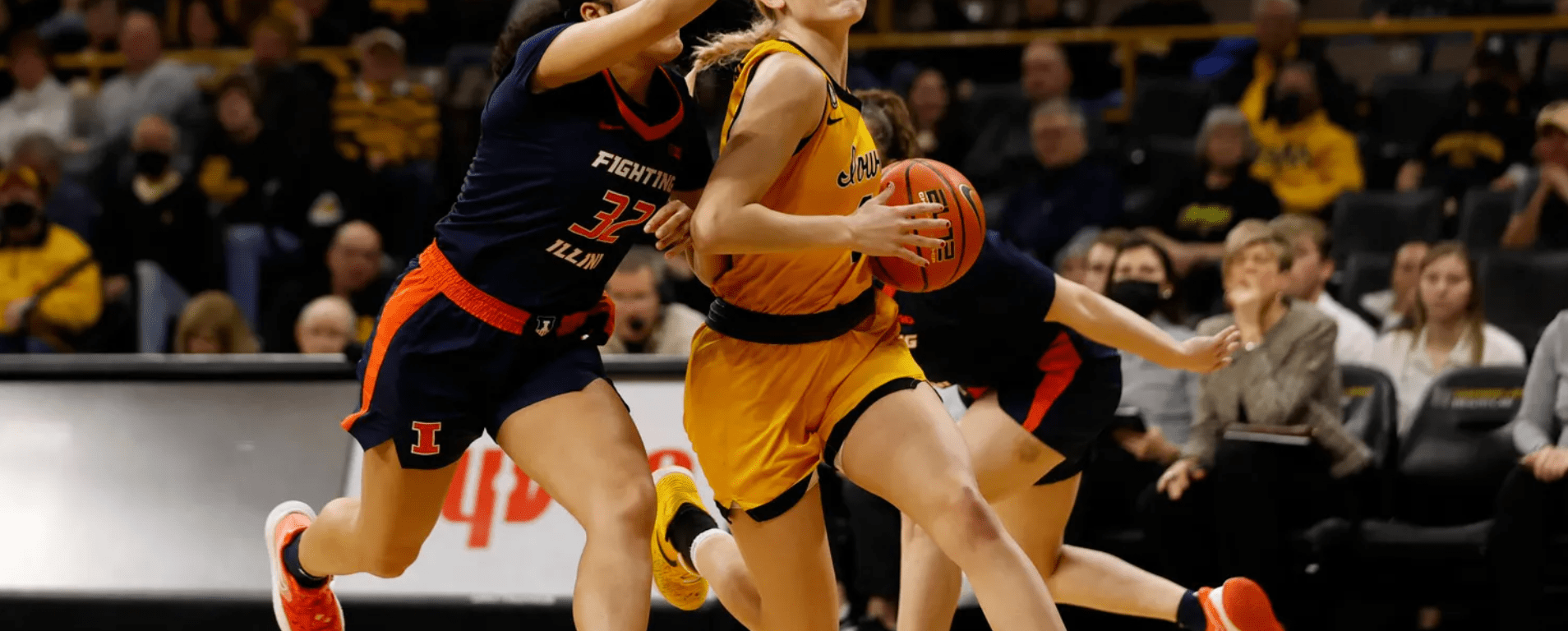 Photo: Iowa’s Kylie Feuerbach drives to the basket during Sunday’s game against Illinois. (Brian Ray/hawkeyesports.com)