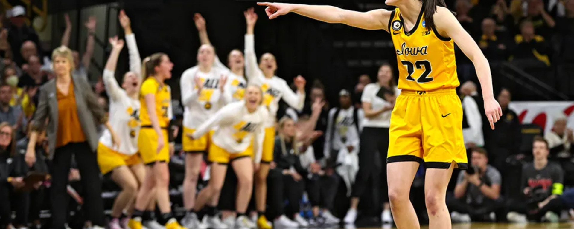 Photo: Iowa’s Caitlin Clark celebrates after making a shot in Friday’s NCAA tournament first-round game. (Stephen Mally/hawkeyesports.com)