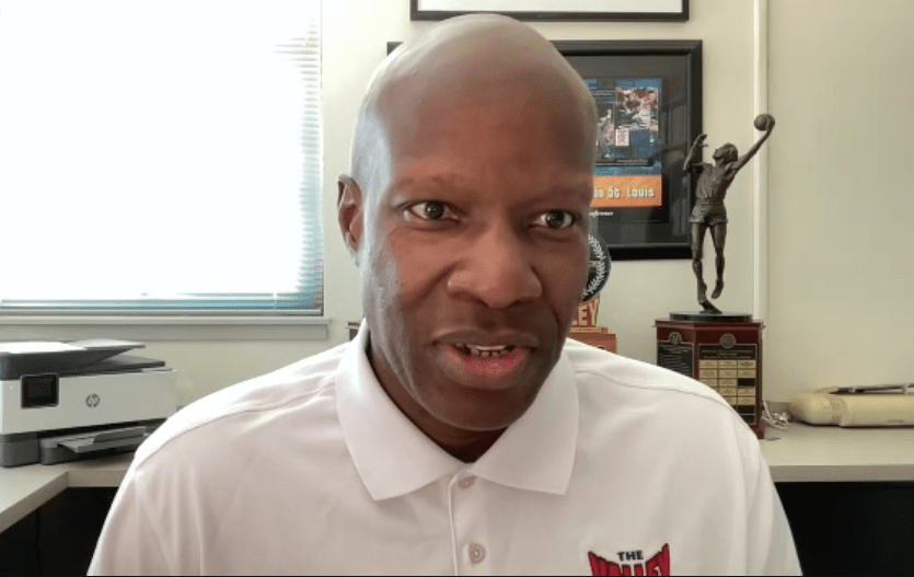 Photo: Missouri Valley Conference commissioner Jeff Jackson speaks to the media during Thursday’s video conference.