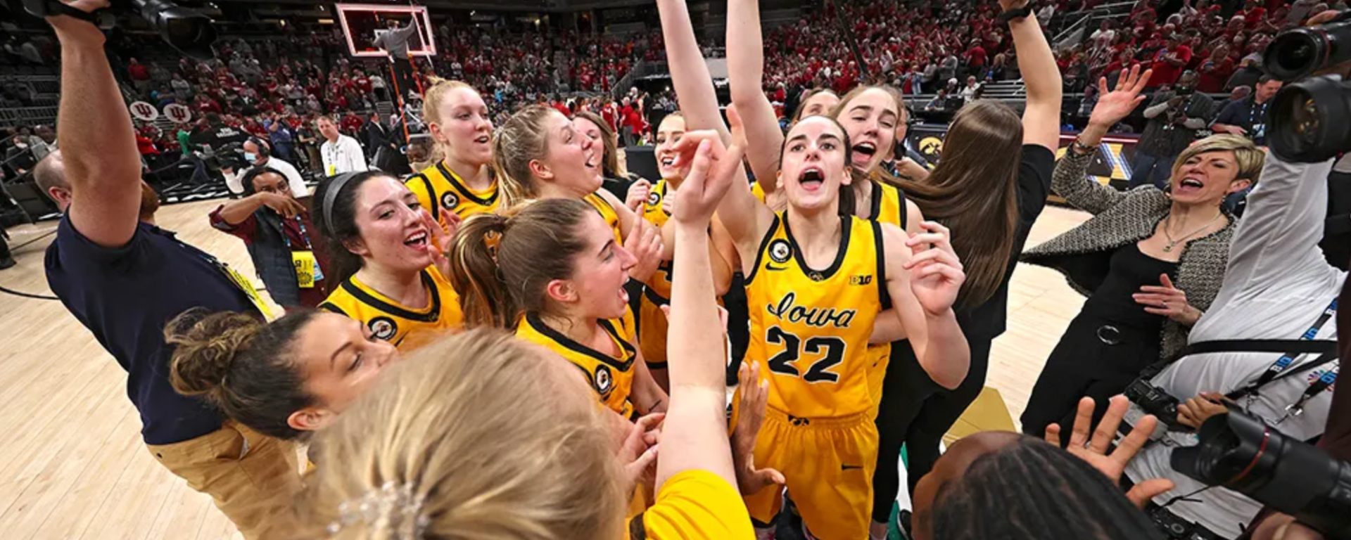 Photo: Iowa’s women’s basketball team celebrates the Big Ten Tournament championship last season. The tournament title game will be shown on CBS beginning in 2023-24 under the conference’s new rights deal. (Stephen Mally/hawkeyesports.com)