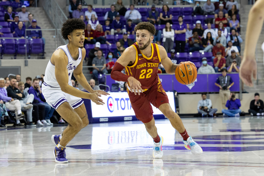 Photo: Iowa State’s Gabe Kalscheur (right) drives to the basket in a game against TCU last season. (Matthew Visinsky/Icon SportsWire)