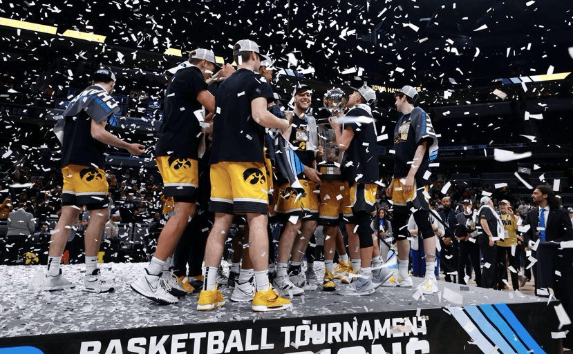 Photo: Iowa’s men’s basketball team celebrates the Big Ten Tournament championship last season. (Brian Ray/hawkeyesports.com)
