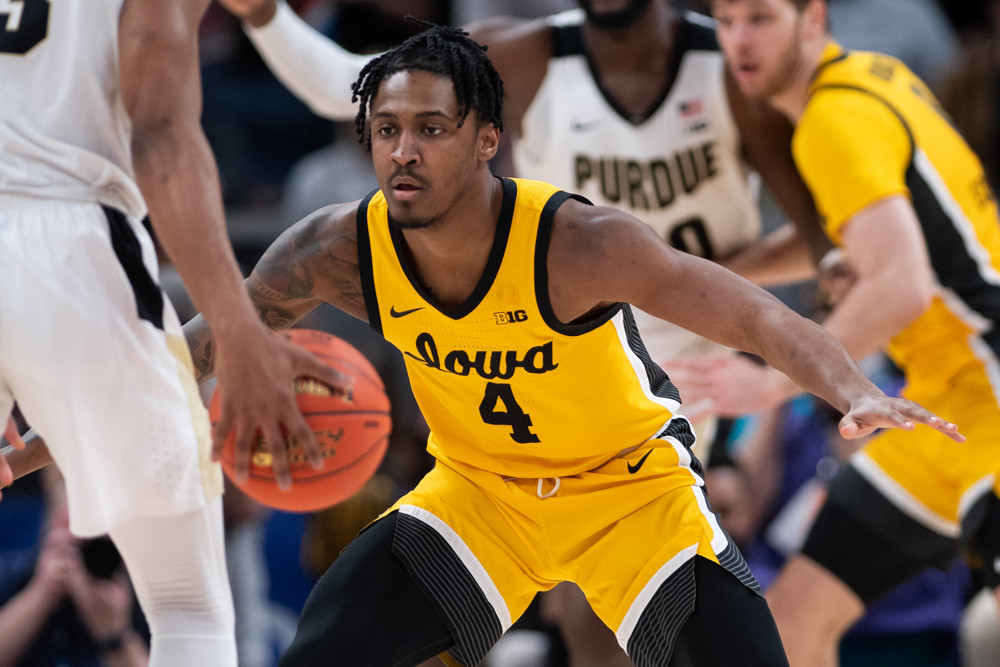 Photo: Iowa guard Ahron Ulis, who was suspended for the Hawkeyes’ exhibition game last Monday, will be available for Monday’s season opener against Bethune-Cookman. (Zach Bolinger/Icon Sportswire)