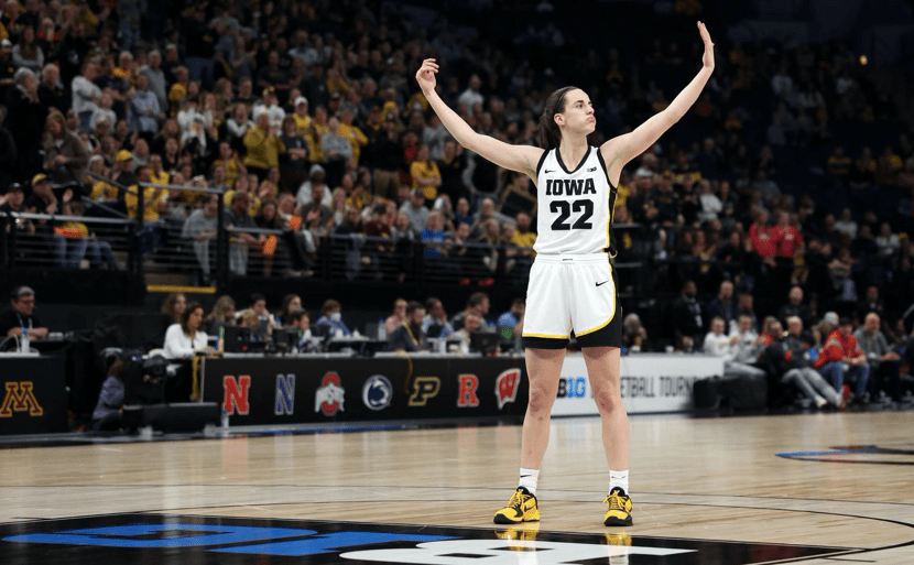 Photo: Iowa’s Caitlin Clark celebrates during the Big Ten Tournament championship game. (Brian Ray/hawkeyesports.com)