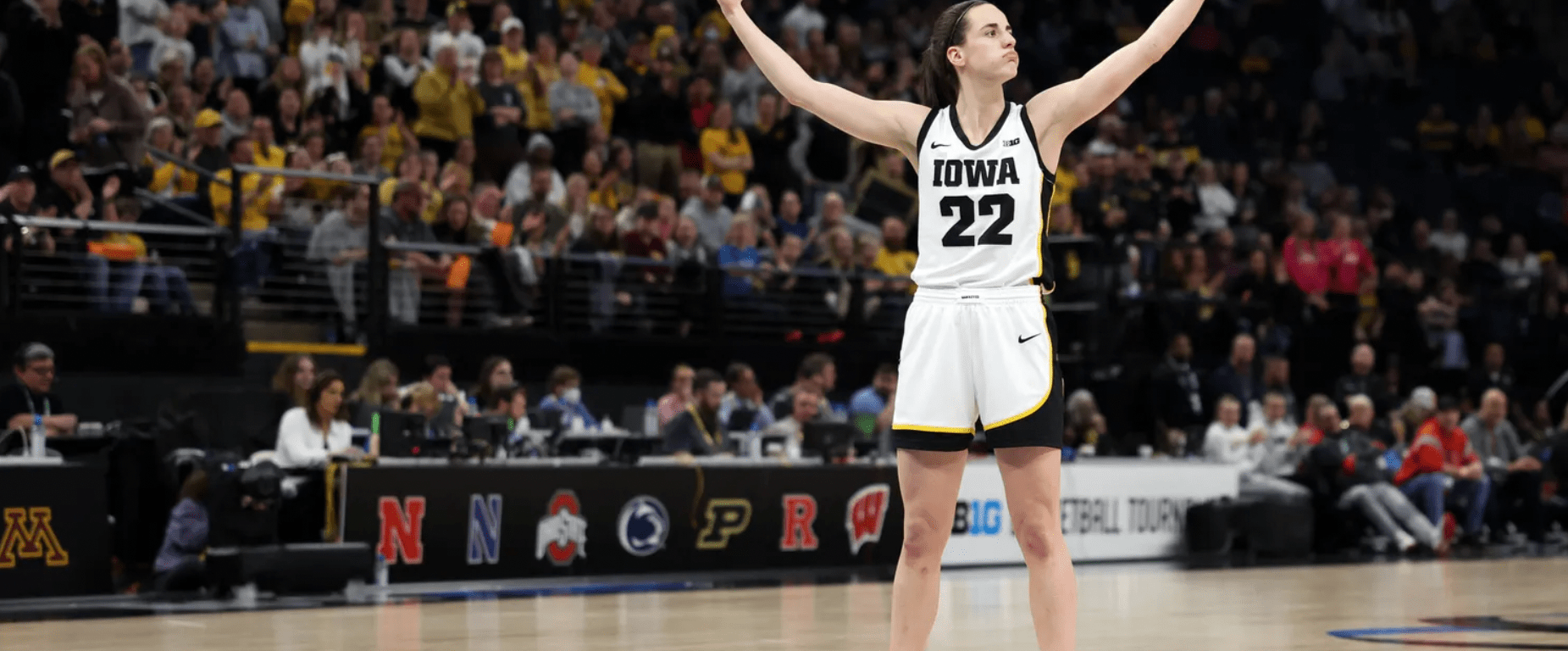 Photo: Iowa’s Caitlin Clark pumps up the crowd during the Big Ten Tournament championship game. (Brian Ray/hawkeyesports.com)