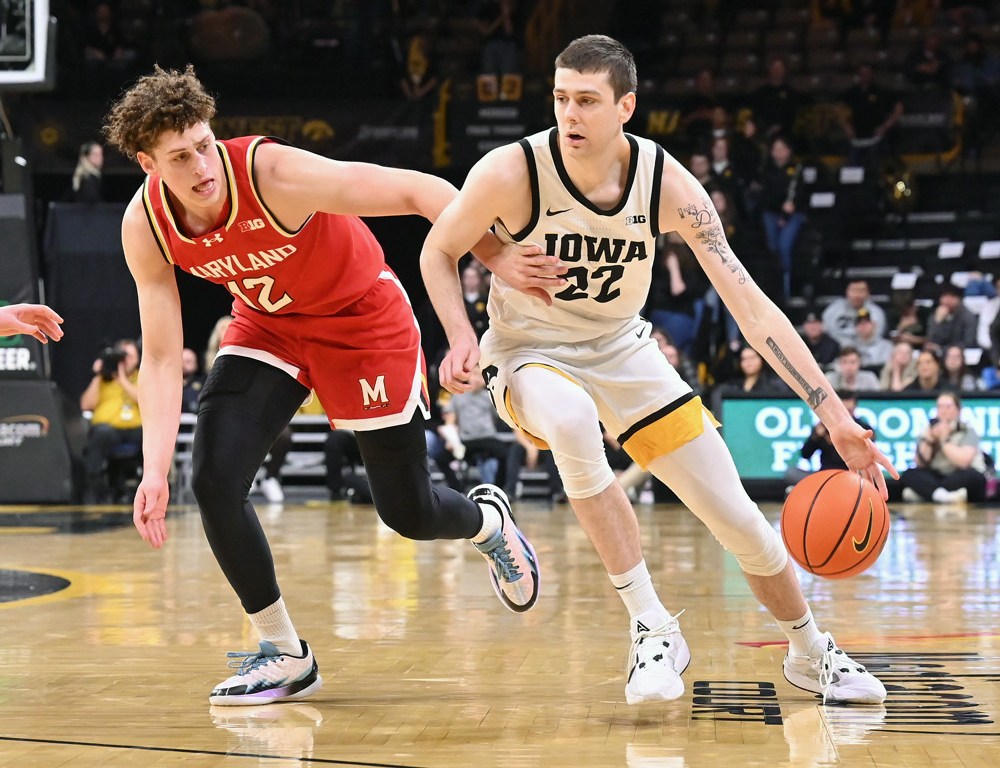 Photo: Iowa’s Patrick McCaffery (right) has dealt with illness and injury this season, but hit four crucial free throws in Friday’s win over Ohio State. (Keith Gillett/Icon Sportswire)