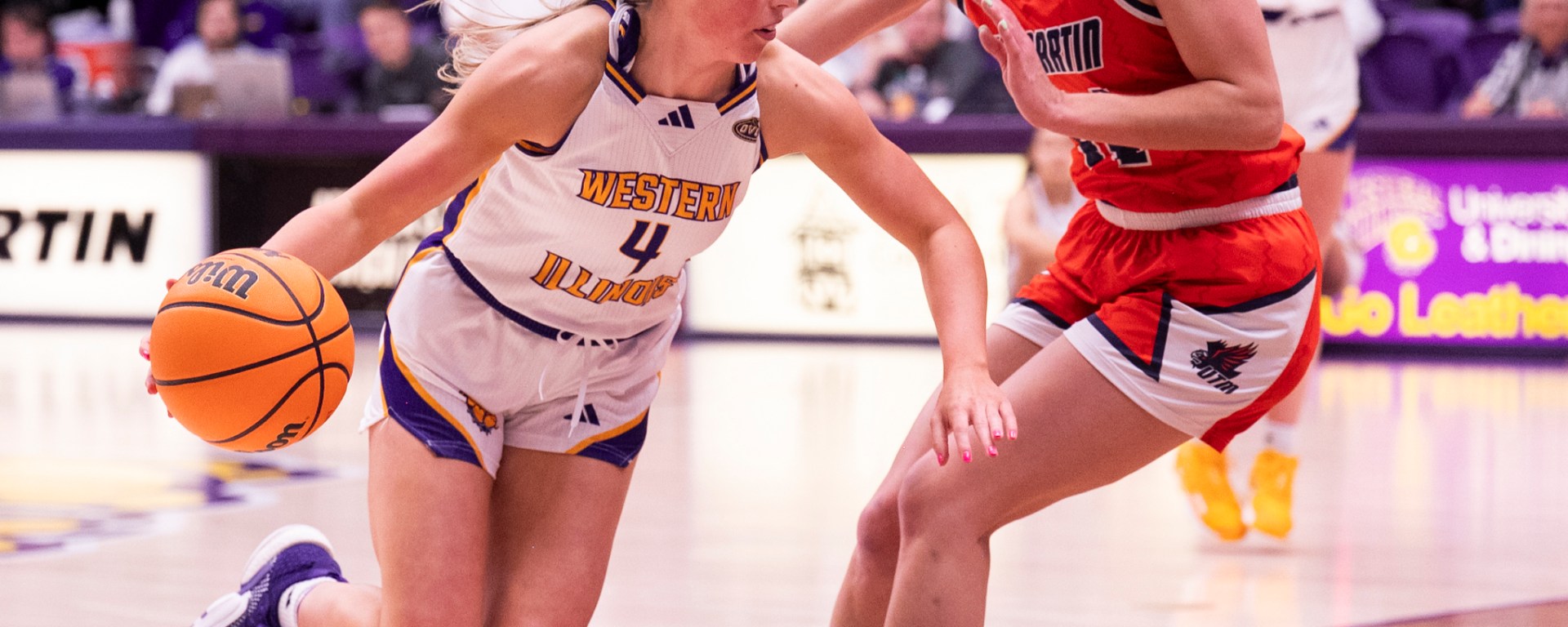 Photo: Western Illinois’ Allie Meadows drives to the basket in the second half. (Photo courtesy of WIU Athletic Communications)