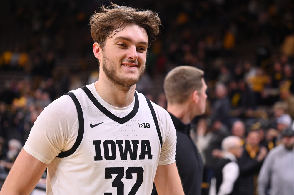 Photo: Iowa’s Owen Freeman smiles to show off his chipped tooth after Sunday’s win over Minnesota. (Keith Gillett/Icon Sportswire)
