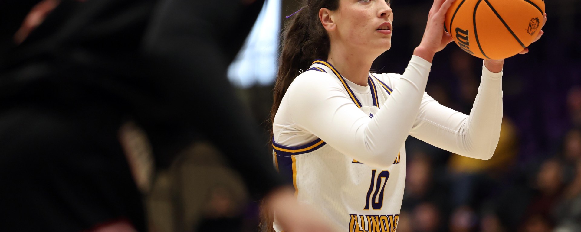 Photo: Western Illinois forward Mallory Shetley prepares to shoot a free throw in last Monday’s win over SIUE. (Photo by John Lovretta)