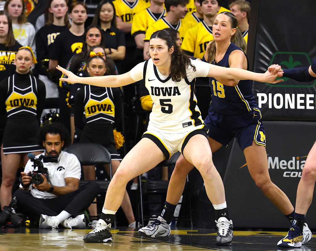 IOWA CITY, Iowa — Ashley Sofilkanich stood near the Michigan basket, hands on hips, head down, a sign that she had enough of Iowa’s Ava Heiden.